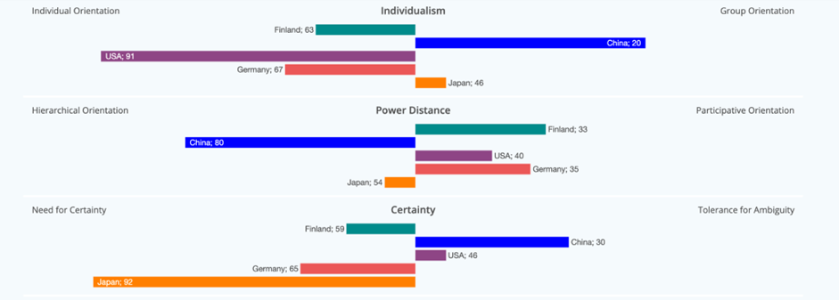 Country Comparison – Culture in the WorkplaceTM. (n.d.). Culture in the WorkplaceTM. https://cultureinworkplace.com/country-comparison-dashboard/?ode-country-selected=FI,CN,DE,JP,US